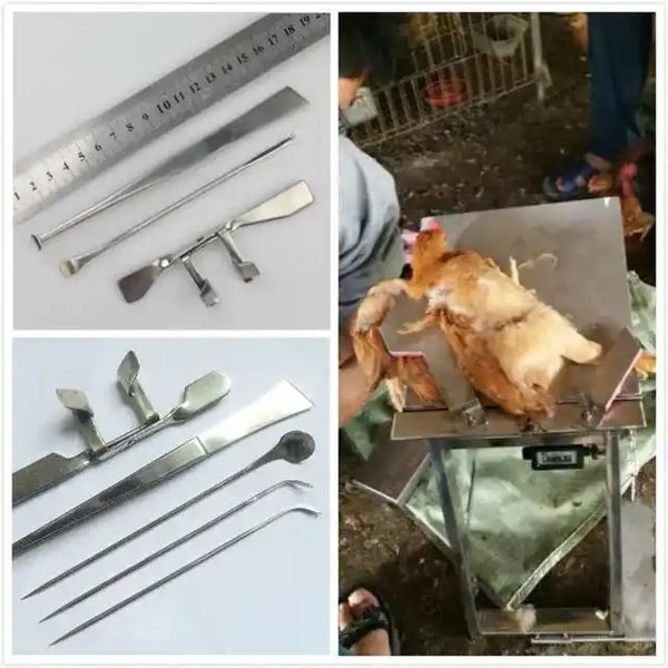 阉鸡过程中有很多注意事项,如果操作不到位,轻则影响鸡的行走,重则致死。现在有专门从事阉鸡的阉鸡队服务于阉鸡养殖户。阉鸡主要用到阉鸡手术台(一般600-800元不等)、手术刀、扩张器、钎匙、细线、小勺子、镊子等阉鸡器具。这些器具既有专门阉割小公鸡(0.3-1.5斤)的,也有用于大公鸡的,价格在150-200元不等。