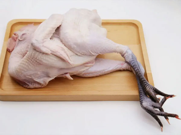 去毛后体表嫩白,鸡肉结实有弹性